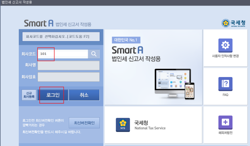 국세청에서 법인세 신고용으로 무료 배포하는 스마트에이(SmartA) 프로그램을 설치한 이후, 첫번째로 해야할 일은 회사 정보를 입력하는 일이다. 상세 내용은 프로그램 사용자 매뉴얼에 나타나 있다(22년 10 월 기준으로, 20220228_국세청 일반법인_2022.pdf 파일 참조).아래 화면에서 신규회사등록 버튼을 눌러서 시작하게 된다.