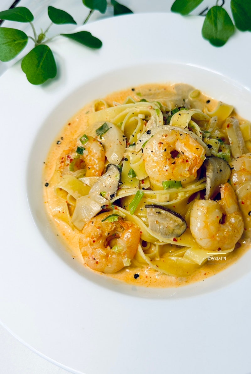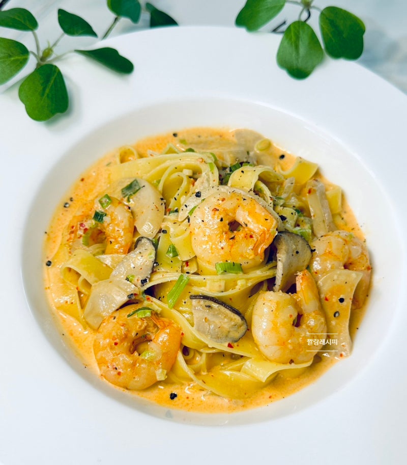 투움바 파스타의 매력은 일반 크림 파스타에 고춧가루를 넣어 느끼함을 줄이고 끝까지 풍부한 맛으로 먹기 편한 점이다. 새우와 버섯의 조합도 너무 좋아서 크림 파스타를 만드는 간단한 방법이 필요할 때마다 주로 투움바 파스타를 만들어요. 나는 결국 그것을 하게 되었다.