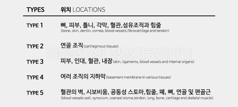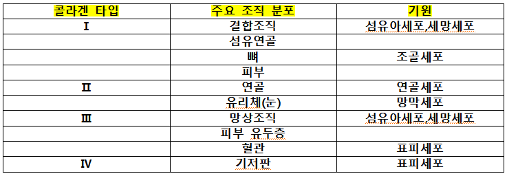 콜라겐은 섬유질 단백질입니다. 콜라겐은 29가지 종류가 확인되었으며, 그 중 섬유성 콜라겐인 I형 콜라겐이 체내에서 가장 풍부한 종류라고 합니다.